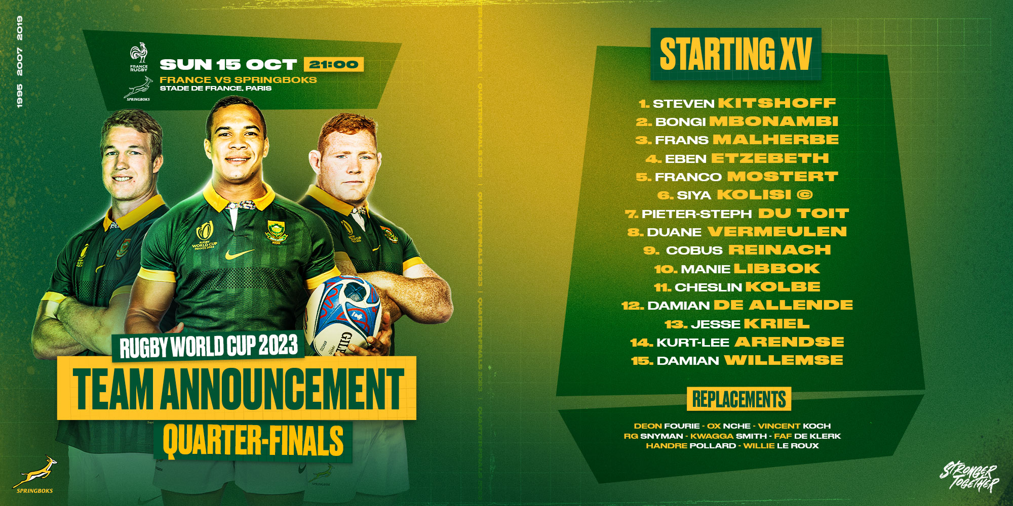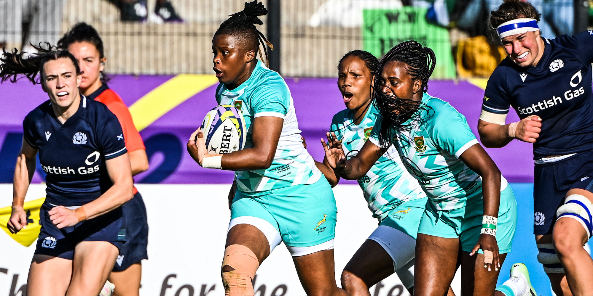 Rights Mkhari proved instrumental in the win over Uganda, with the co-captain scoring the opening try and having a hand in another. Marlize de Bruyn and Roos also scored, with De Bruyn's try coming after a good run by debutant, Maria Tshiremba.