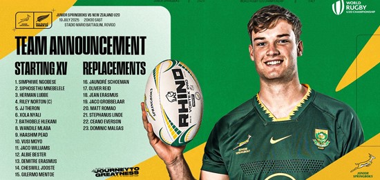 The matchday squad to face New Zealand will be announced on Thursday afternoon. Saturday’s final, which kicks off at 20h30, marks the first time the two sides meet in a World Rugby U20 Championship decider since South Africa’s memorable victory over New Zealand in the 2012 sold-out final at Newlands in Cape Town.